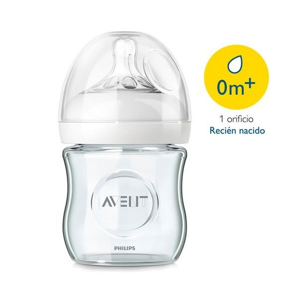 El biberón AVENT Natural de cristal de 120 ml con tetina de flujo para recién nacidos está diseñado para ofrecer comodidad y funcionalidad. Este producto cuenta con un sistema anticólicos avanzado, que ayuda a reducir molestias digestivas en los bebés. Su forma ergonómica y su cuello ancho facilitan el agarre, el montaje y la limpieza del biberón. Fabricado con cristal de silicato de boro de alta calidad, totalmente reciclable y sin BPA, el biberón AVENT es una opción segura para los más pequeños. Adaptado para bebés de 0 a 6 meses.