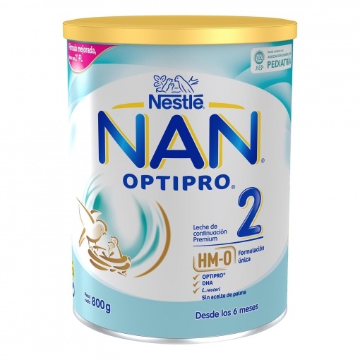 NAN OPTIPRO 2 es una fórmula diseñada específicamente para bebés a partir de 6 meses. Este producto incluye ingredientes cuidadosamente seleccionados para cubrir las necesidades nutricionales del bebé. - L. reuteri: El L. reuteri es un probiótico que está naturalmente presente en la leche materna. - Proteínas - OPTI PRO: Un contenido proteico muy similar al de la leche materna, que tiene la calidad y cantidad justa que el bebé necesita. - 13 vitaminas: NAN 2 contiene 13 vitaminas esenciales para el desarrollo y mantenimiento del organismo. - Inmunonutrientes protectores: Favorecen el buen funcionamiento de las células inmunitarias intestinales gracias al hierro, zinc y selenio.