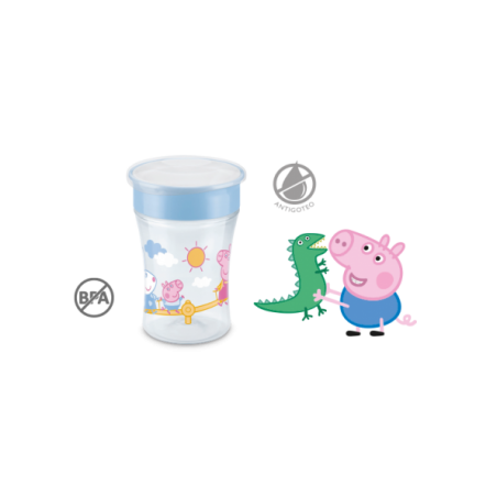 NUK MAGIC CUP +8 MESES PEPPA PIG 230 ML presenta el sistema 1-2-3 NUK, desarrollado para abarcar cada etapa del proceso de aprendizaje para comer y beber solo, considerando las destrezas y nuevos conocimientos que el pequeño debe adquirir para empezar a ser más independiente. La Magic Cup NUK incluye una válvula antiderrame.